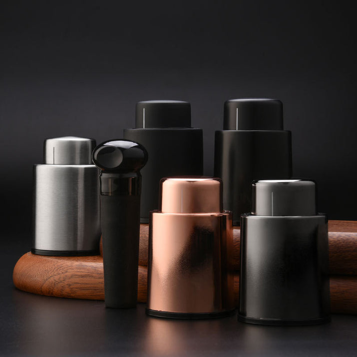 FörlÀng livslÀngden pÄ ditt vin med vÄr eleganta vakuumvinstopper. HÄll smaken frÀsch och kontrollera hÄllbarheten med stil.